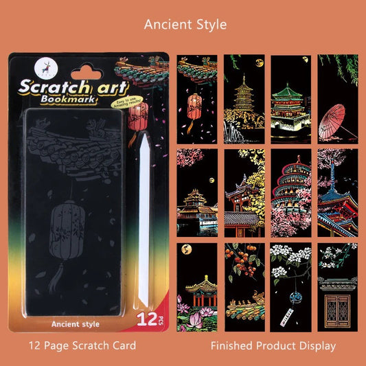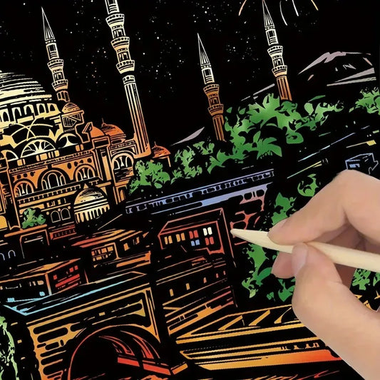 12-Piece DIY Scratch Painting Set – World Famous Architecture Night Scenery
