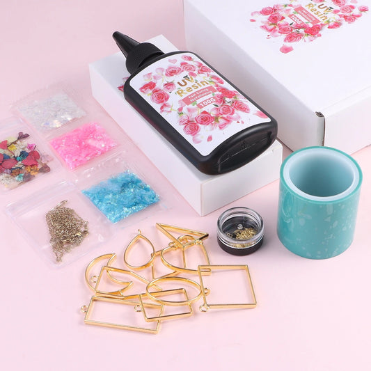 18PCS DIY Resin Jewelry Kit – UV Glue, Frames & Fillings for Creative Family Fun