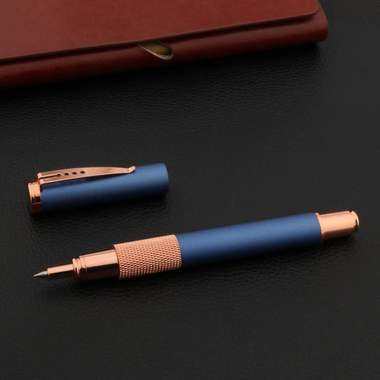 Frosted Blue Rollerball Pen with Rose Gold Accents