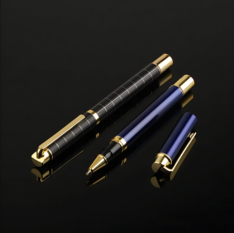 Imagine the chic lines of a designer suit with a touch of contemporary flair—the Business Attire Pen, with its glossy grid pattern and golden accents, embodies that modern aesthetic. It’s a power pen for the urban professional who’s always on point.
