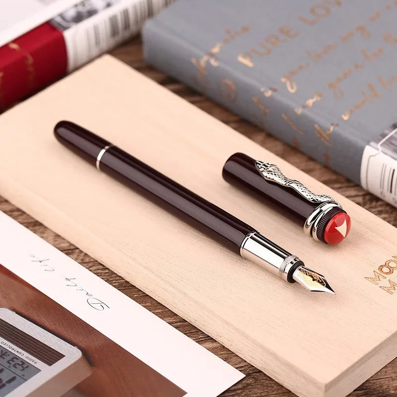 The F9 Master Fountain Pens, available in a deep brown and a classic black, are a blend of traditional craftsmanship and intricate design. Each pen features a secure screw-on cap that is as functional as it is aesthetically pleasing, with an elaborate snake clip that adds a touch of opulence and a conversation-starting element to the pens' design.