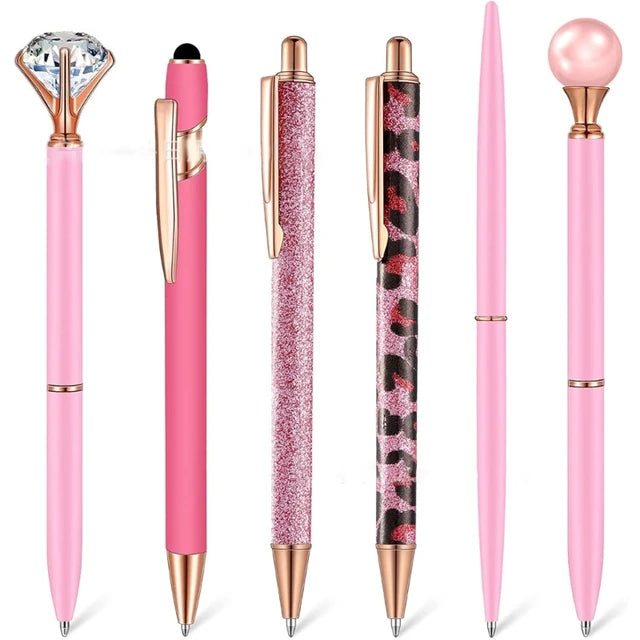 Brighten up your desk with our dazzling pen bundles! Each set features six stunning pens in vibrant colors like pink, black, blue, rose gold, and lavender. Adorned with sparkling crystals, glitter, and chic patterns, these pens are perfect for adding a touch of elegance and fun to your writing. Whether you're signing documents, journaling, or gifting to a friend, these stylish pens make every word shine. Elevate your stationery game and bring a bit of glam to your day with our fabulous pen collections!