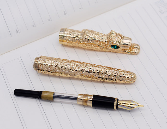 The Nebula Cheetah is our most powerful release yet. Shaped into a fast and mighty cheetah with two glowing green eyes and an engraved body and cap. The attention to detail is incredible, so are its writing abilities, The Nebula Cheetah carries a fine 0.5mm gold plated nib for excellent ink flow. Cheetah can use a variety of different ink cartridges or the complimentary ink converter if you prefer bottled ink. The gripping section of this pen was carefully designed to stay in balanced with its full sized body.